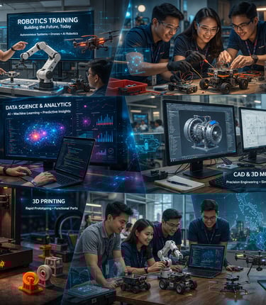 Group of professionals engaged in a technical workshop, focused and collaborative.